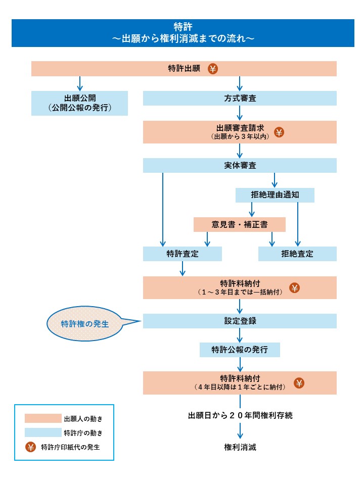 ちなみに、出願後「方式審査」が自動的に始まりますが、これは様式の審査で、出願審査請求(実体審査)とは異なります。権利化を目指すのであれば、出願審査請求を行うことが必要です。